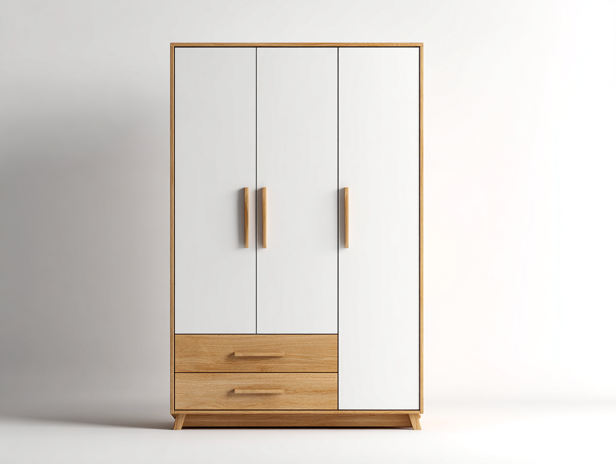 Armadio a 3 ante - Legno-MDF - 156x59x198 cm - Bianco-Rovere - Stile nordico contemporaneo