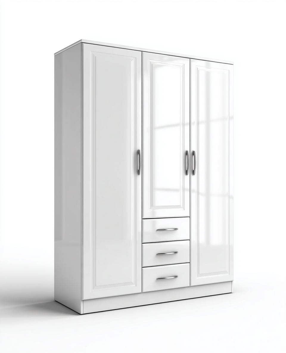 Armadio a 3 ante - MDF - 150x55x190 cm - Bianco - Stile moderno elegante