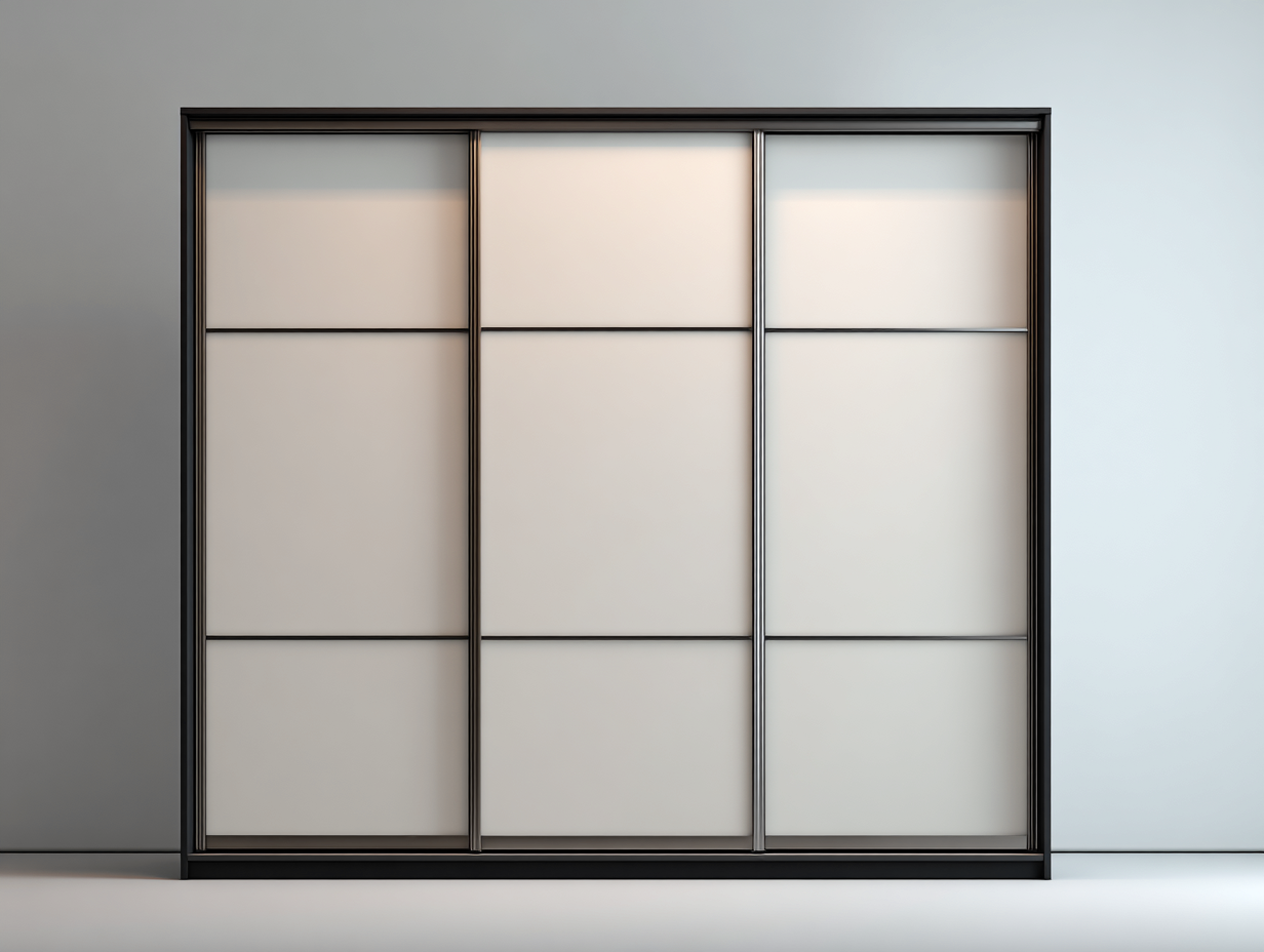 Armadio con ante scorrevoli - Legno-Vetro-Metallo - 240x65x210 cm - Beige-Nero - Stile moderno minimal