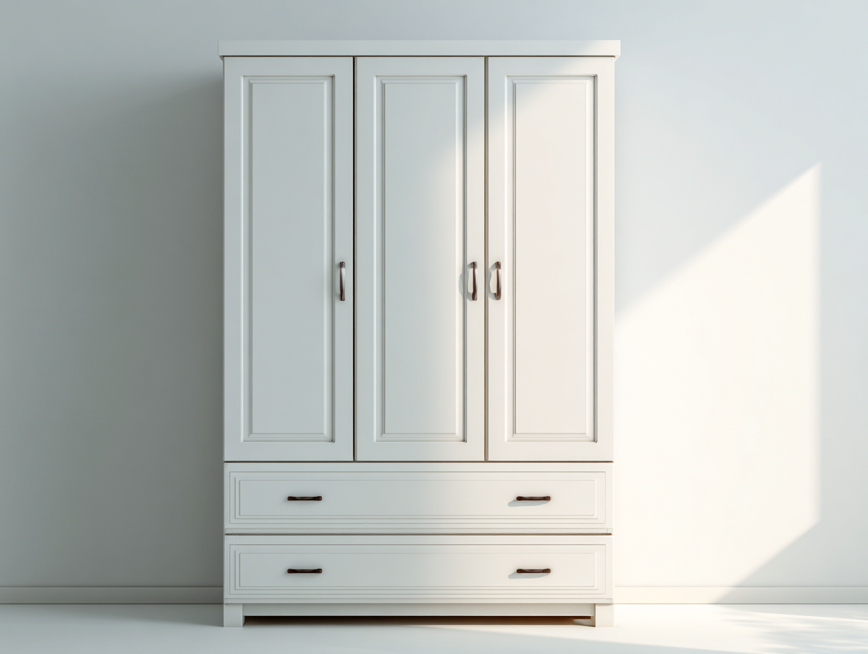 Armadio a 3 ante dallo stile classico, progettato per offrire una soluzione pratica e ordinata per l'arredo della camera da letto. Il colore bianco uniforme e le linee tradizionali donano un aspetto elegante e facilmente abbinabile a diversi contesti abitativi.