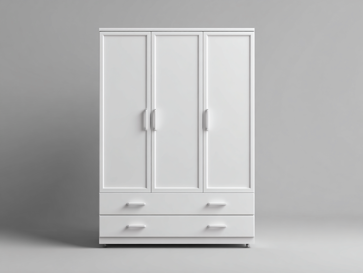 Armadio a 3 ante dallo stile moderno essenziale, progettato per offrire una soluzione ordinata e funzionale per la camera da letto. Il design lineare e il colore bianco uniforme permettono un facile inserimento in ambienti contemporanei e minimalisti.