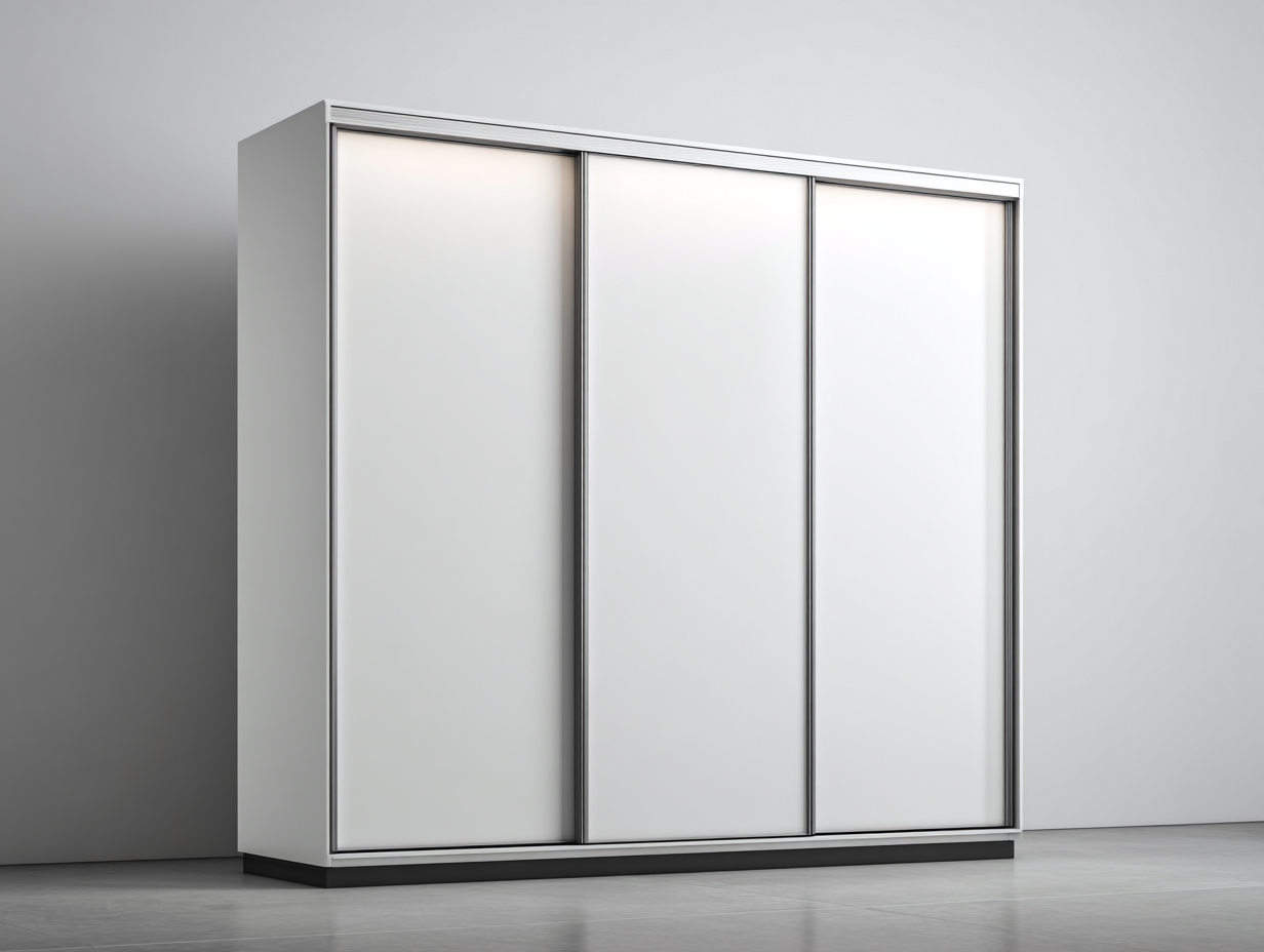 Armadio con ante scorrevoli dallo stile moderno essenziale, progettato per offrire una soluzione ordinata e funzionale alla camera da letto. Le superfici chiare e il design lineare permettono un facile inserimento in ambienti contemporanei.